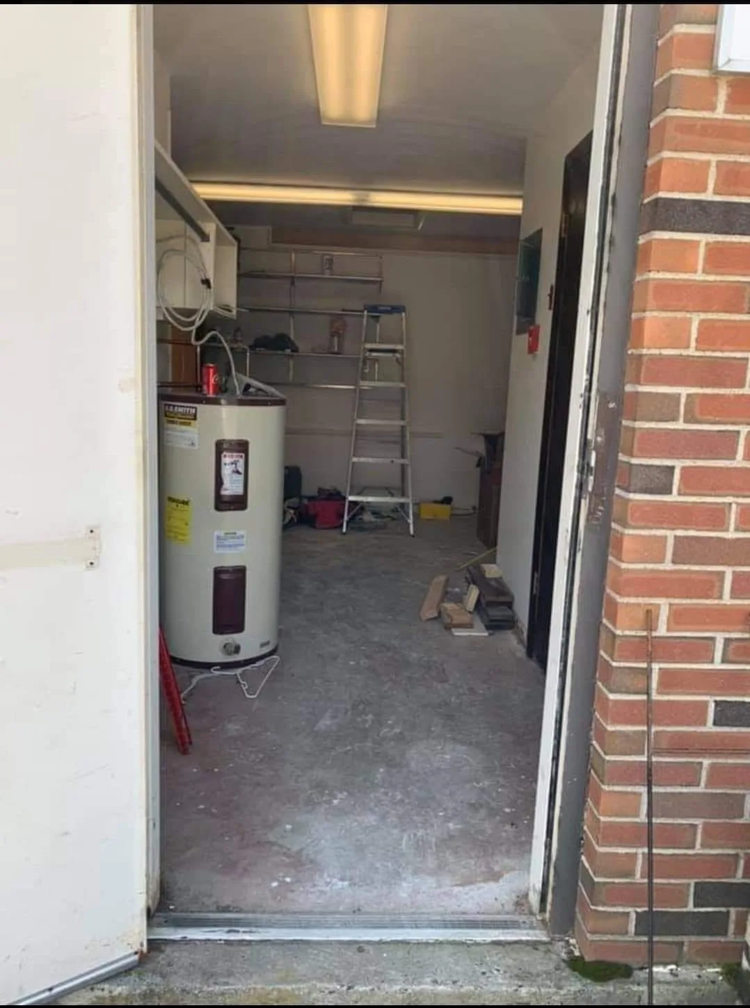 This project focused on the transformation of an unfinished commercial unit through a utility space renovation. The initial phase involved a thorough clearing of the area. We removed construction debris, an old ladder, and various outdated materials to prepare the site. Subsequently, the interior walls were meticulously cleaned and prepared. They received a durable, professional-grade coat of paint. Transitioning to the ground surface, the raw concrete floor was prepared and coated with a clean, light-grey finish. This was a core component of the utility space renovation. Furthermore, functional elements like the water heater and metal shelving were integrated into the updated layout. Ultimately, the work resulted in a professional environment, showcasing the full potential of a functional workspace.